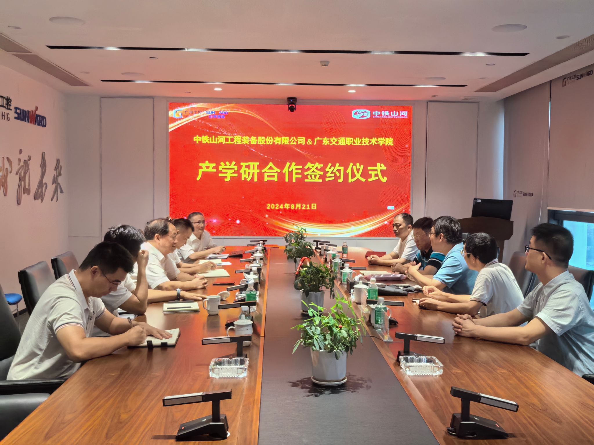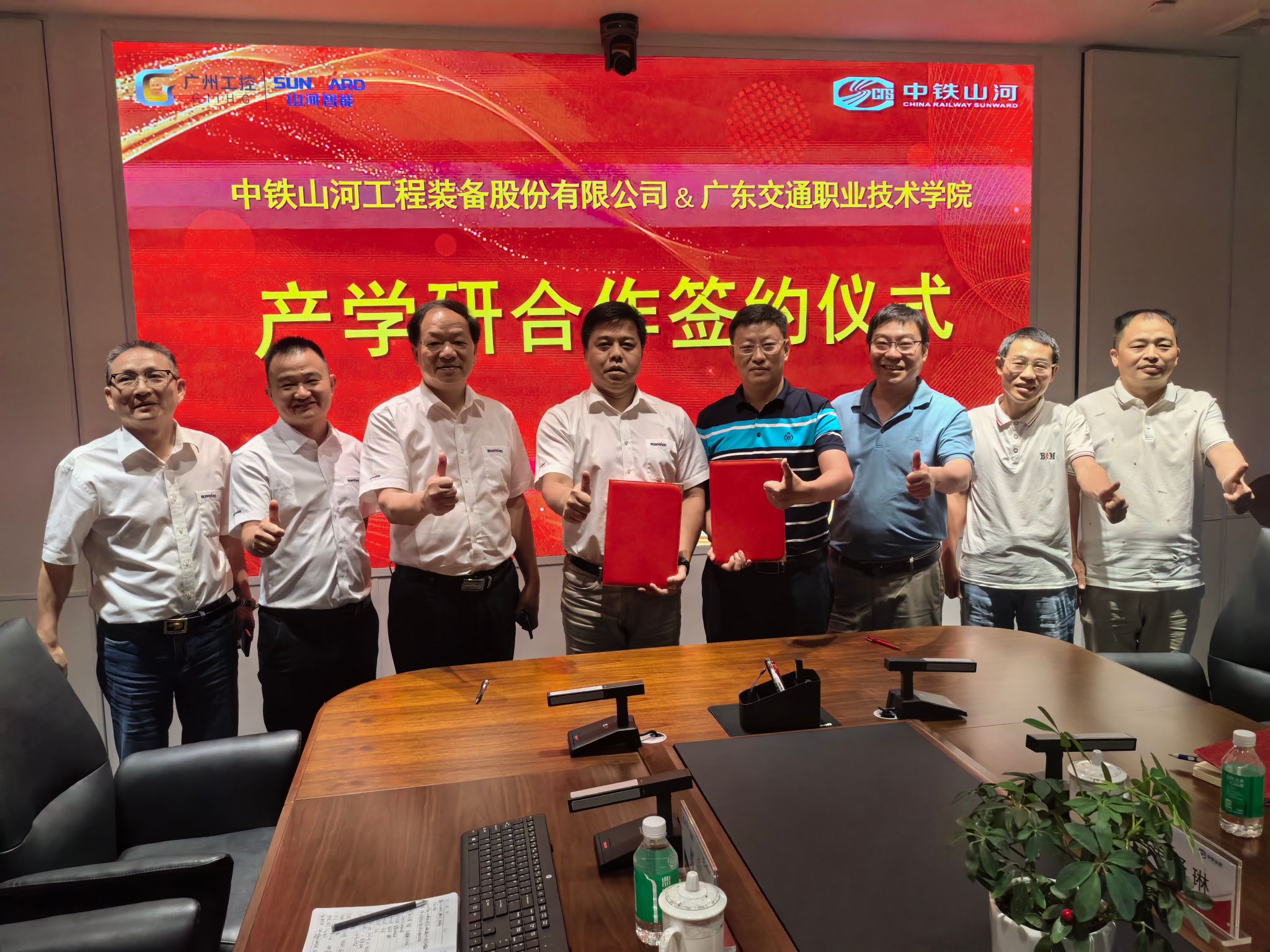为深化产教融合,促进科教融汇,校企联合培养更多高技能人才和能工巧匠,8月21日上午,在荔湾区广州工控大楼,广东交通职业技术学院与中铁山河工程装备股份有限公司举行了产学研合作签约仪式。学院副院长王劲松,汽车与工程机械学院院长郭海龙、副院长肖心远、工程机械系主任蒋波、轨道交通工程机械专业带头人吴良军及相关教师参加了签约仪式,中铁山河工程装备股份有限公司董事长唐彪、科技管理部长聂雄、人力资源部长刘小晨、制造部总监蒋源知、地下空间规划及工程装备设计研究院常务副院长汪鼎华出席了签约仪式,仪式由聂雄部长主持。