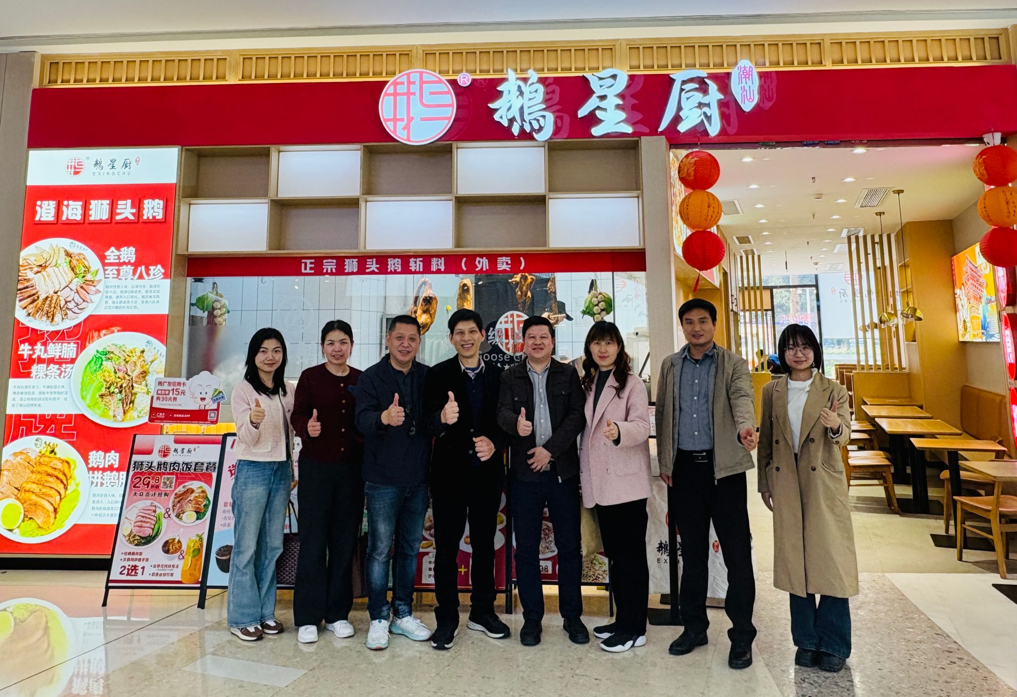 随后,学院一行前往佛山南海中建广场走访创业校友蔡杰生,实地考察了其创业成果,佛山市禅城区委组织部人才综合科黄奕一同在鹅星厨门店共叙校友情谊,三方共同交流各自所在行业发展近况,并探寻校企政深度合作,助力高校毕业生充分就业的可能性,以及高技能人才的“点对点”精准输送。