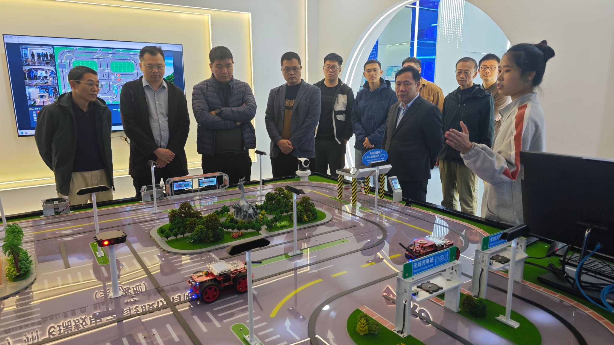 随后一行人参观了汽车与工程机械学院的实训室、科技产业园区,进一步了解教学设施建设与使用情况、校企合作建设水平和国际化进程。同时,听取了全国智能网联汽车及智慧出行行业产教融合共同体建设情况,人工智能开放型区域产教融合实践中心在产教融合建设形式与成果。
