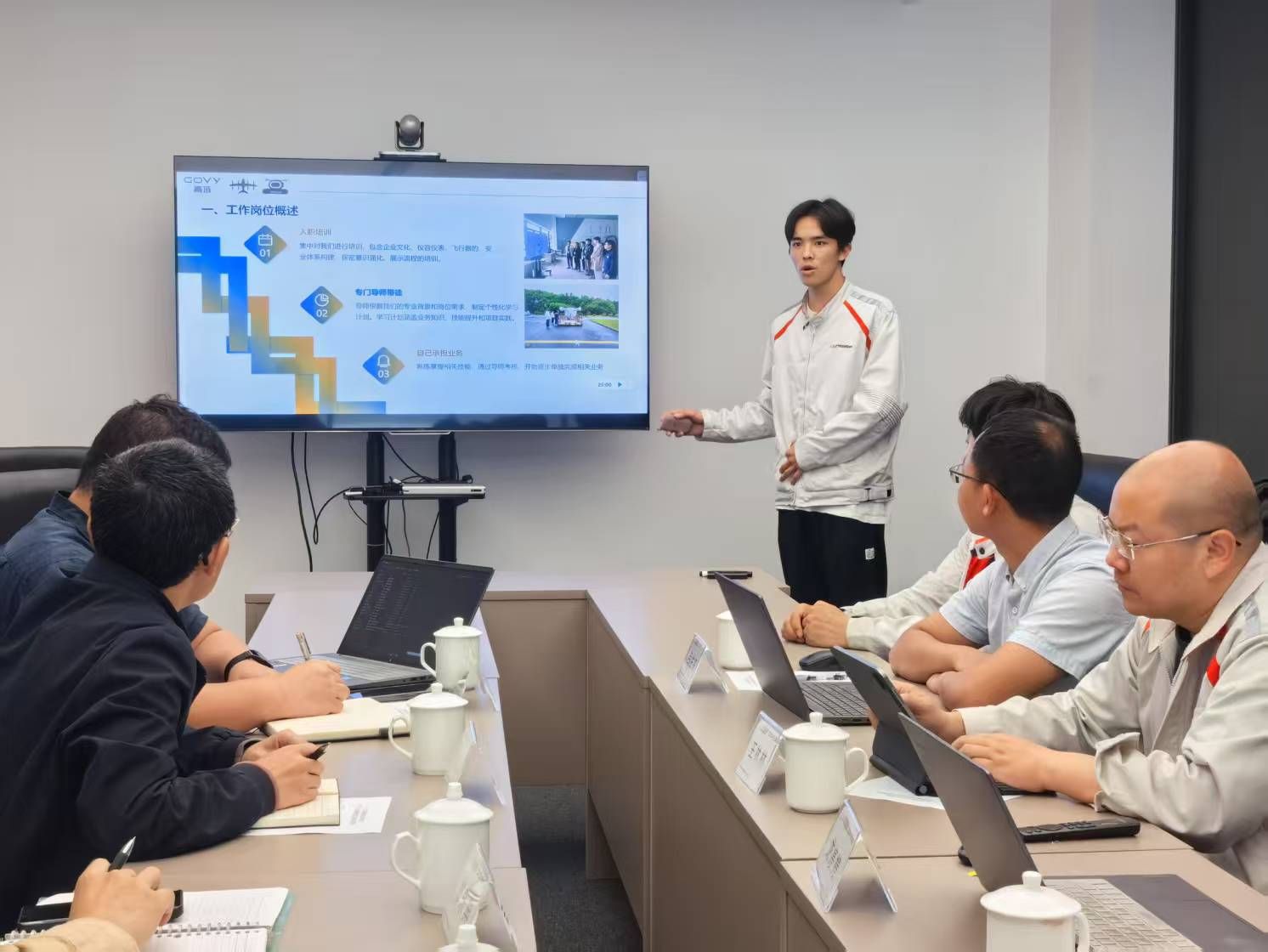 学院一行首先参观了广汽高域目前已推出的飞行汽车产品,如分离式飞行汽车和大型复合翼飞行汽车。同时,听取了汽车与工程机械学院张嘉伦等5名同学的实习汇报,同学们在实习中参与飞行器装配、整机测试、外场展示等核心环节,并在导师指导下完成飞行器调试及大型飞行器保障任务。同学们表示在真实工作场景中收获特别大,同学们的实习表现也得到了广汽高域公司的高度认可。