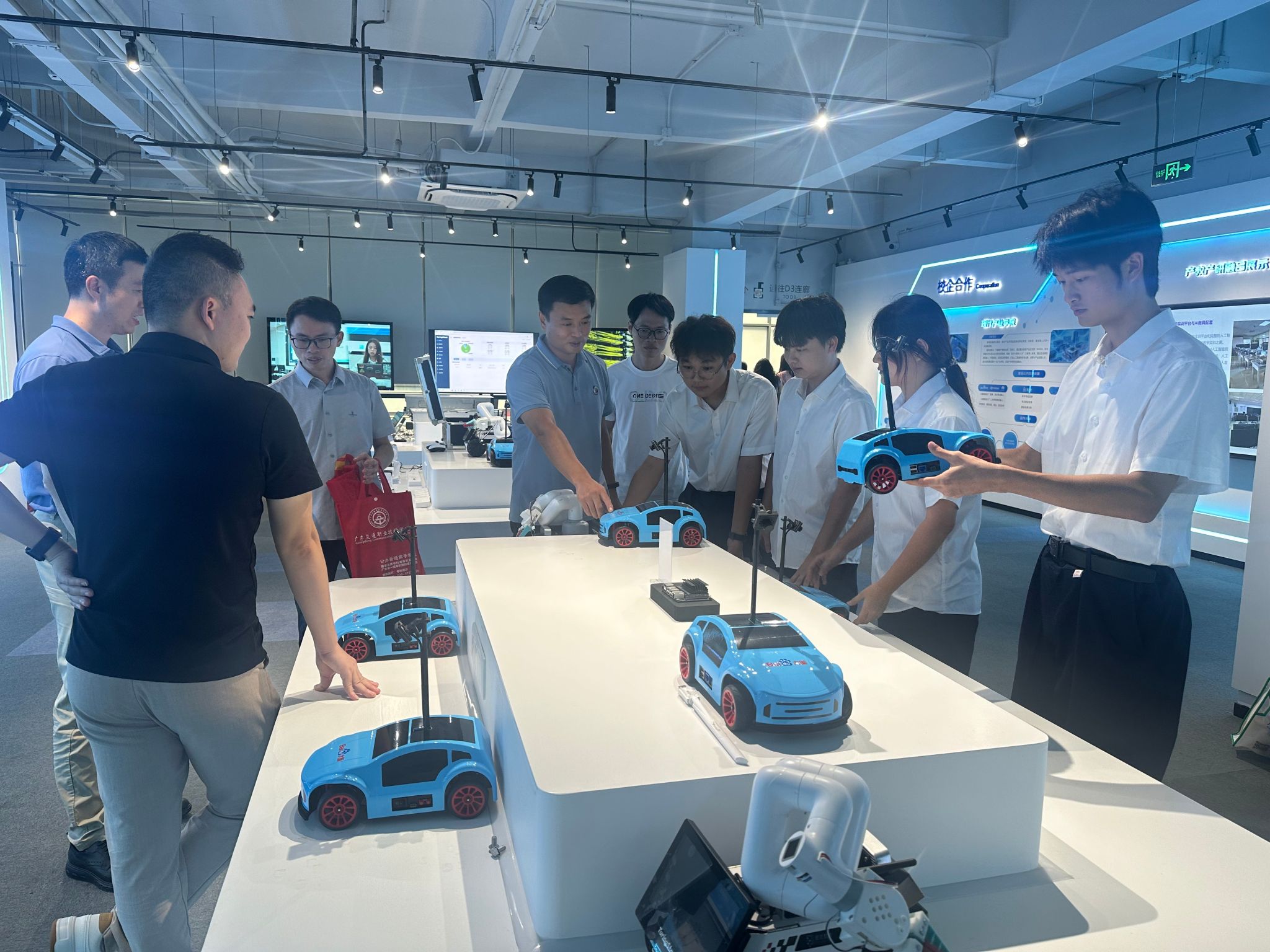 团队参观了图灵智新的主营产品,了解企业的主要工作岗位和任务,进一步明析了智能网联汽车与人工智能相辅相成的密切关系,在人才培养的课程体系中,适当增加汽车人工智能专业技能的课时比重,对学生未来拓展就业面、增强就业竞争力具有一定的帮助。