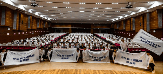 随后,郭卫城向学生骨干训练营代表、训练营班级代表授营旗与班旗,并宣布学生骨干训练营正式开营。