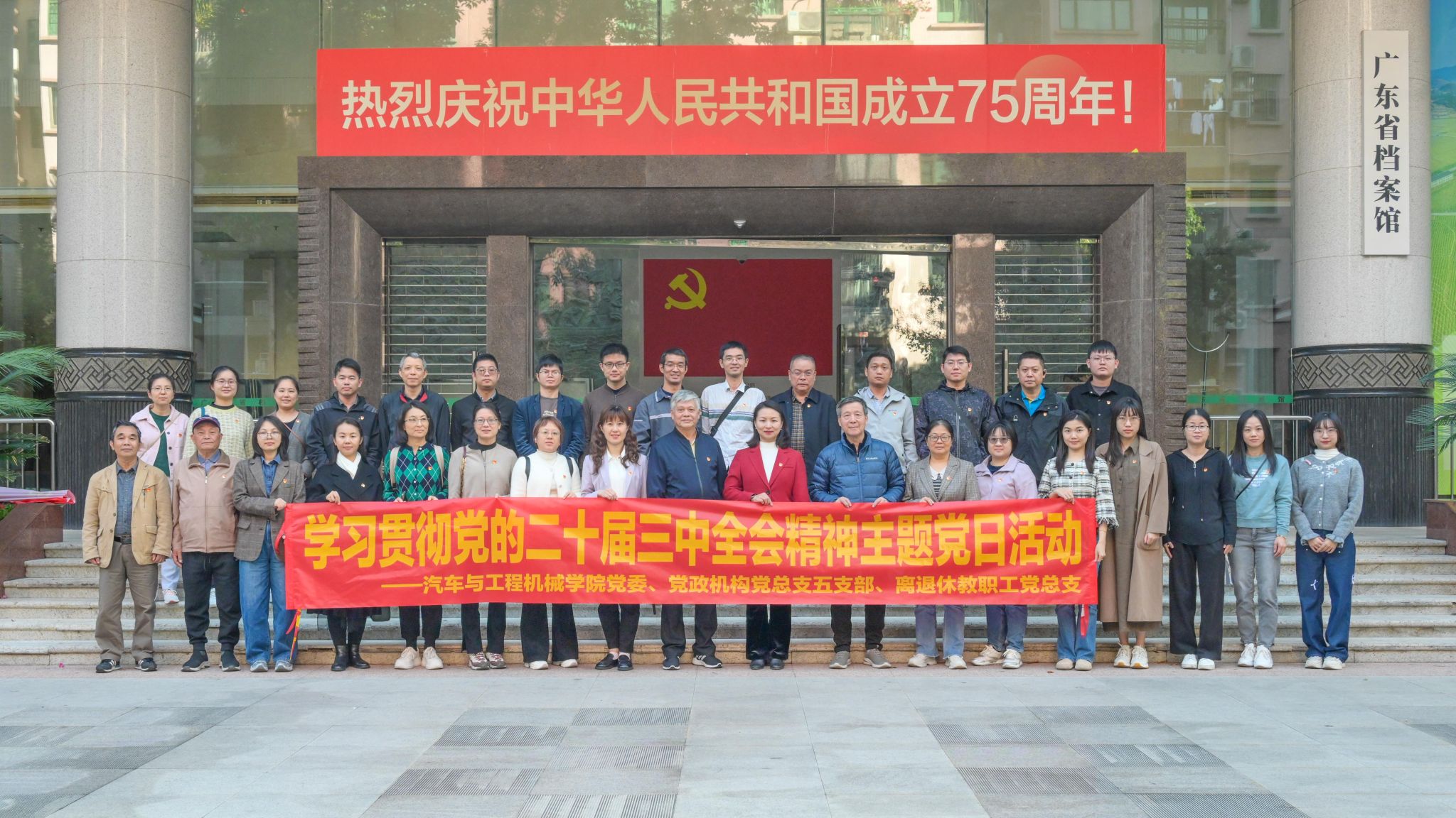 为深入学习贯彻党的二十届三中全会精神,营造奋进新征程的良好氛围,11月28日下午,汽车与工程机械学院党委、党政机构党总支五支部与离退休教职工党总支赴广东省档案馆联合开展“学习贯彻党的二十届三中全会精神”主题党日活动,学院副院长熊嘉逸出席并讲党课。