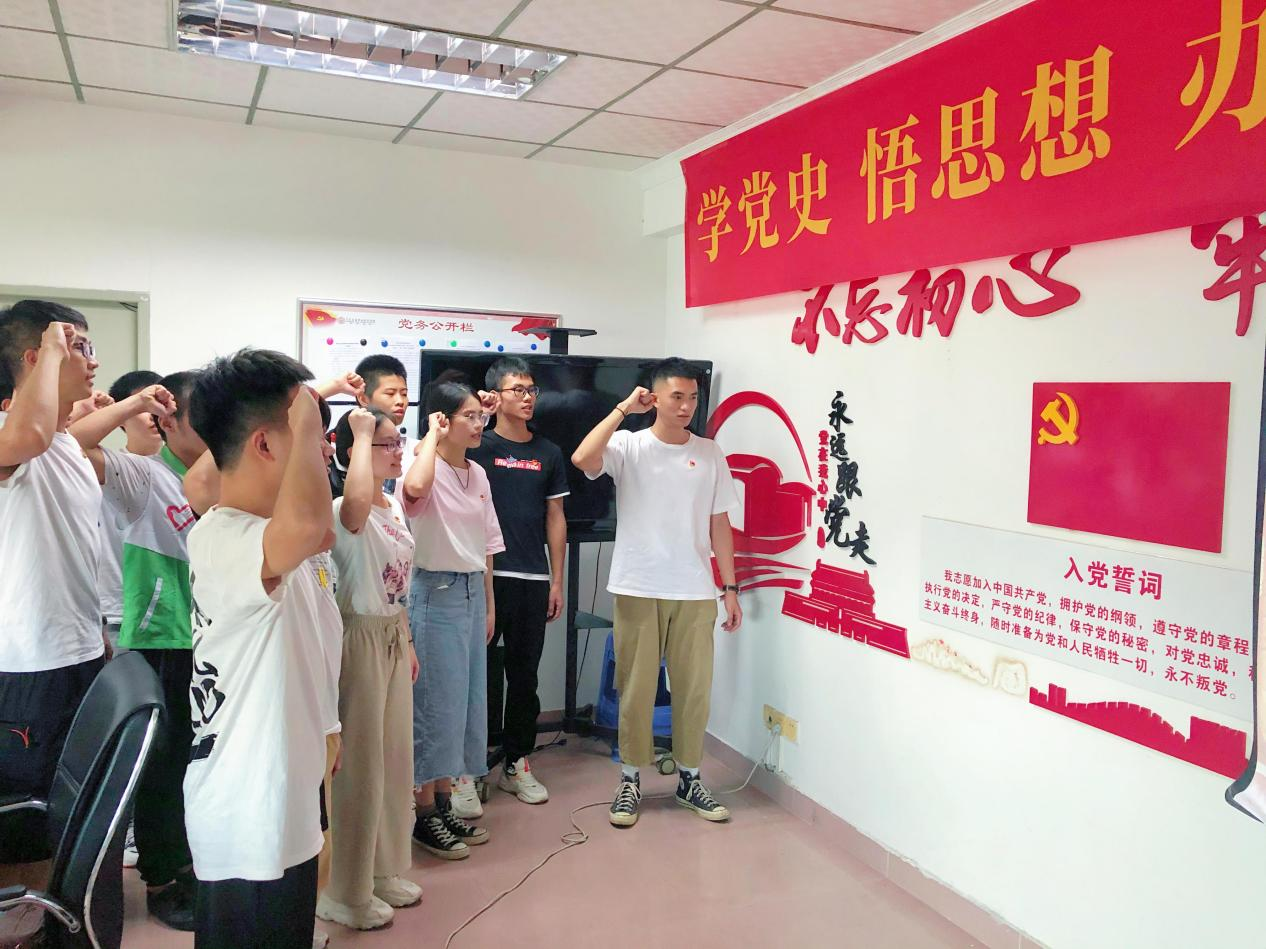 党课开始,全体党员面向鲜红的党旗,重温入党誓词,铭记理想信念,牢记共产党员的责任和使命,不断保持共产党员的先进性,努力在新的岗位上务实工作,为母校增光添彩。