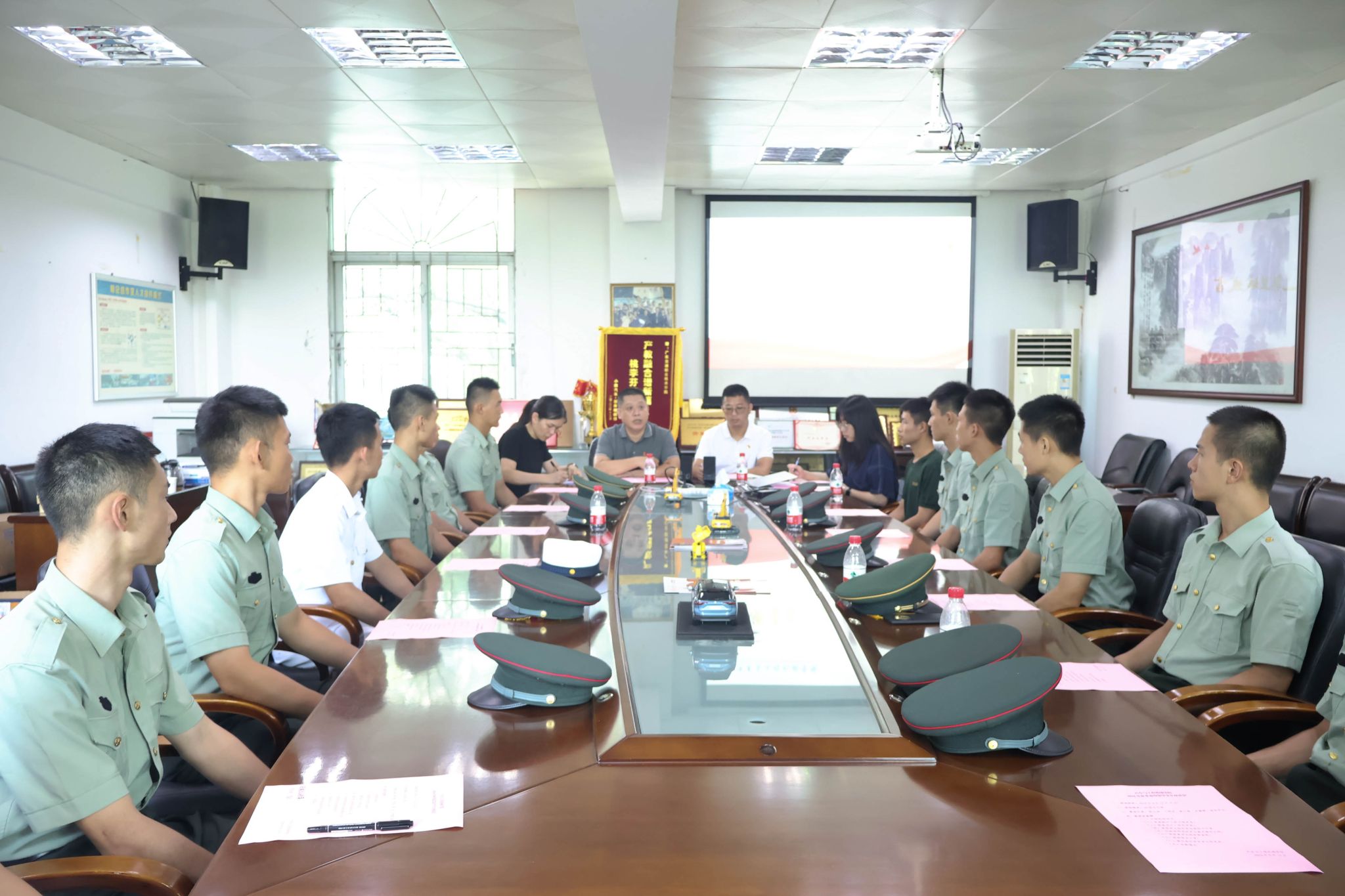 丁明杰肯定了退役学生的忠诚、勇敢与奉献,希望同学们积极为学院的国防教育、征兵宣传贡献自己的力量。蔡少君向同学们介绍汽车与工程机械学院退役复学学生的基本情况以及退役复学的各项优待政策。参会同学们分享了自己的基本情况和服役部队。郭卫城和丁明杰为每位学生赠送了纪念品。