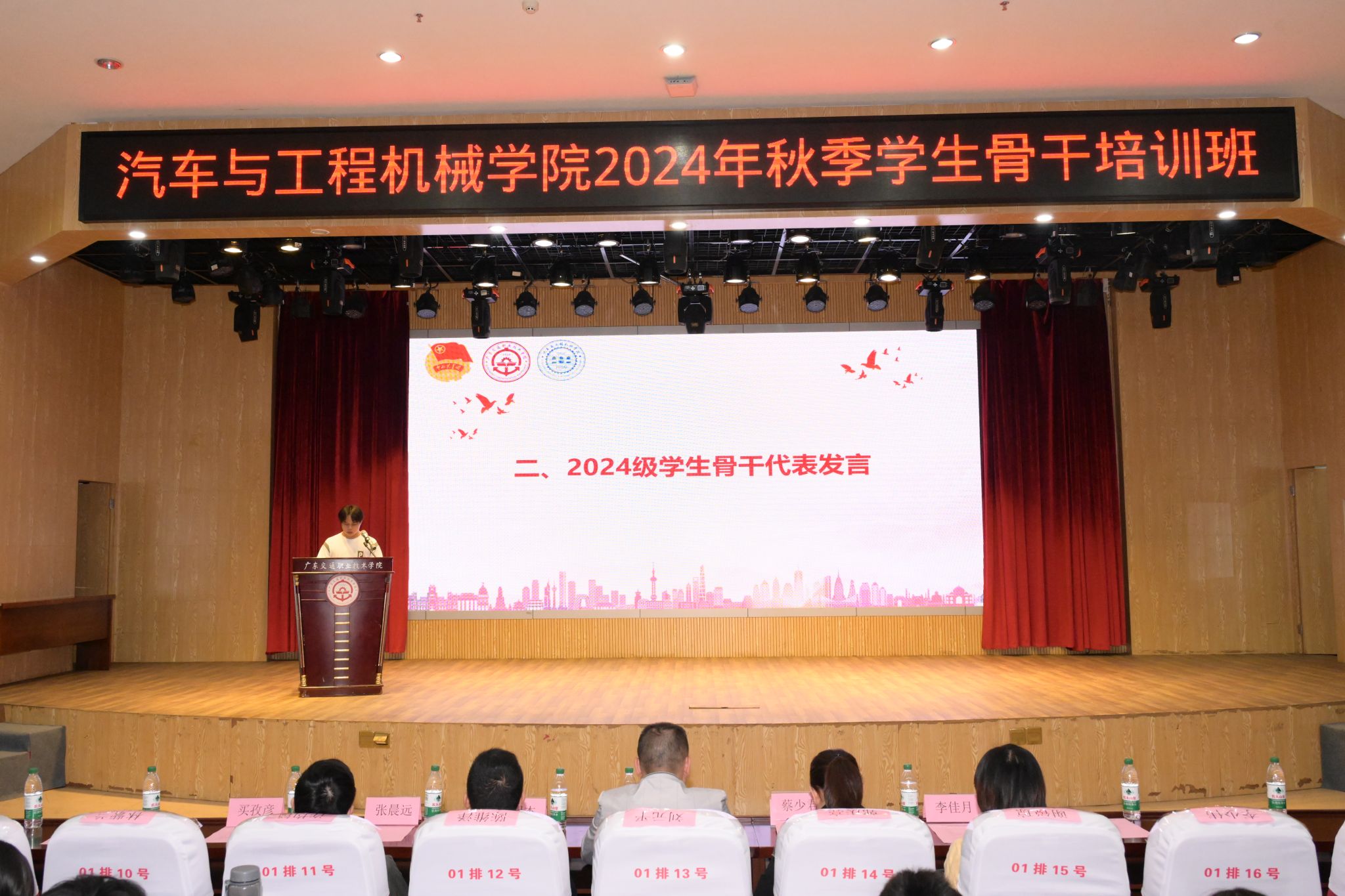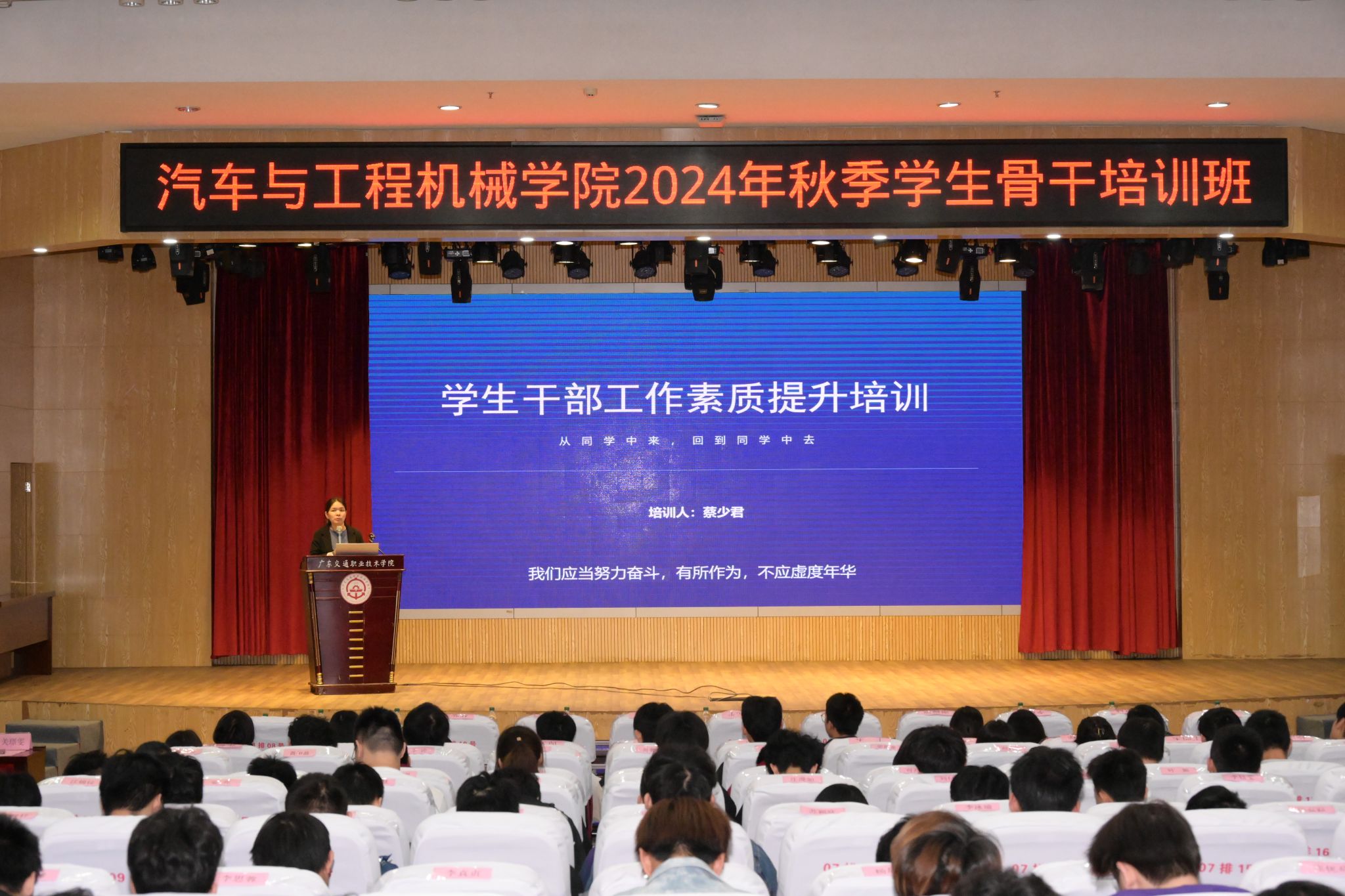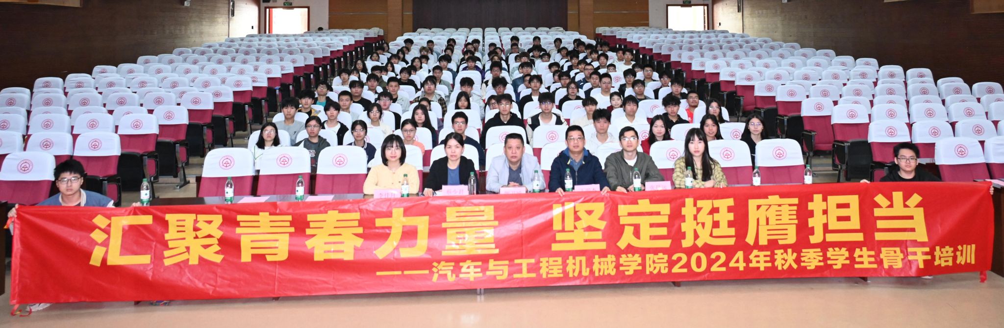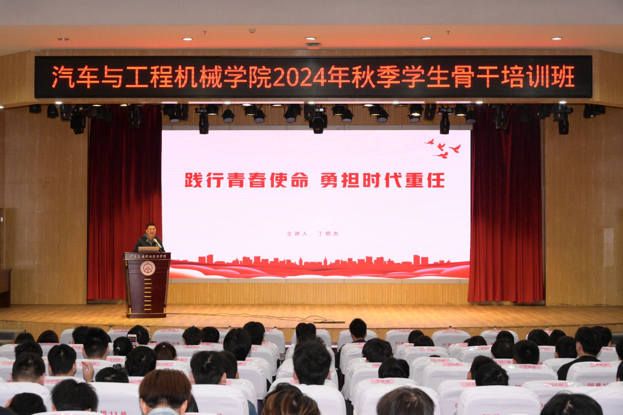 11月23日上午,学生骨干培训开班仪式在图书馆学术报告厅举行,汽车与工程机械学院党委副书记郭卫城、团委书记丁明杰、辅导员老师以及全体2024级学生骨干出席活动。