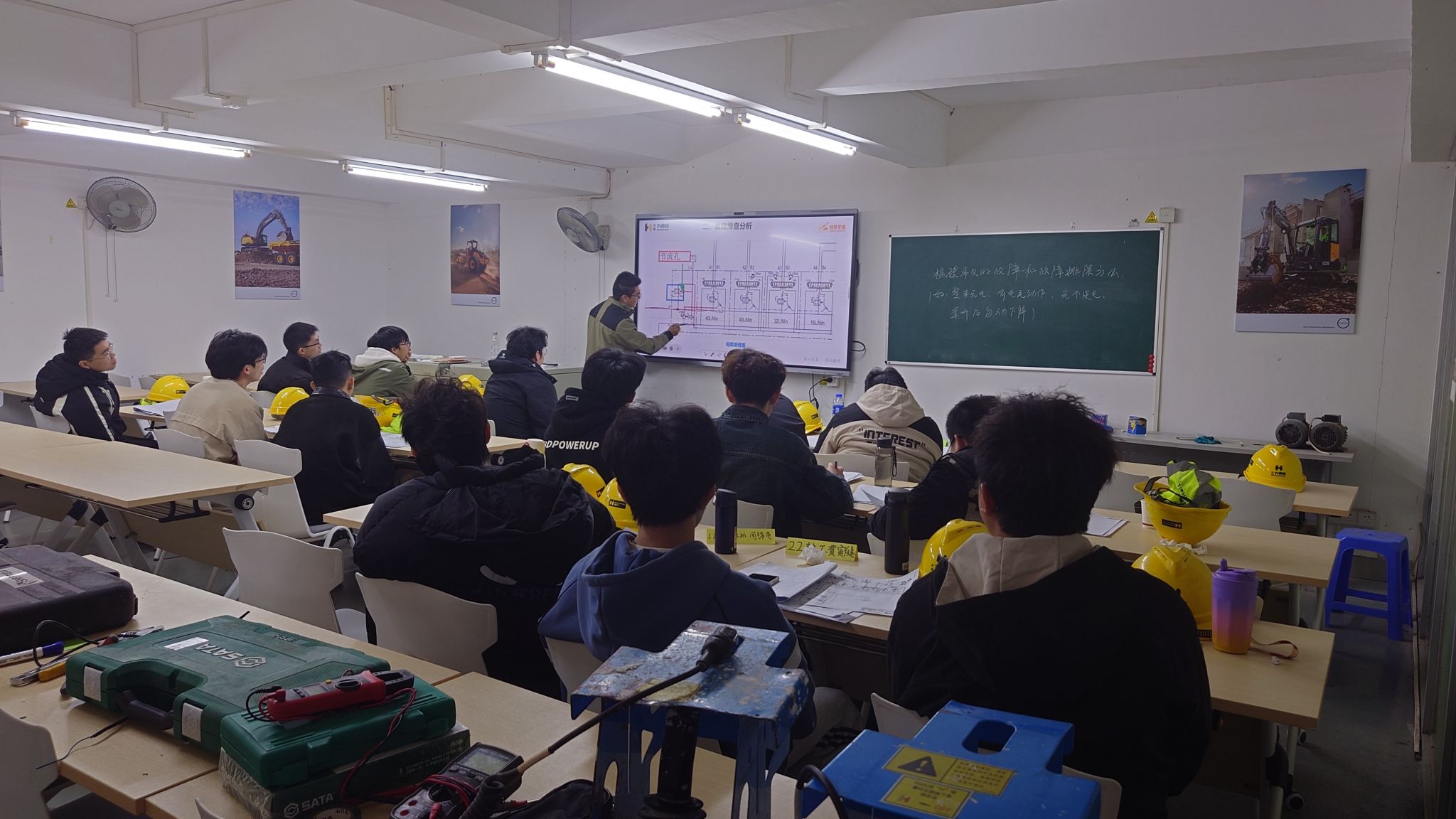2025届“新蜂班”订单班得到了华铁大黄蜂的大力支持,共安排了区域服务经理薛冬冬、何孙文、资深培训师胡勇勇、白云区服务部主任张贤等四位带训老师到校进行培训。培训的内容包括高空作业车安全作业要求、高空作业平台的操作、高空作业平台的结构与原理、液压与电气原理、维修保养、故障排除等。通过订单班的培训,学员快速地学会高空作业平台的基本操作、保养以及简单的故障排除等专业技能知识,能够让学员快速地适应工作岗位内容,并通过考核认定岗位等级与实习待遇相关,调动学员积极性。