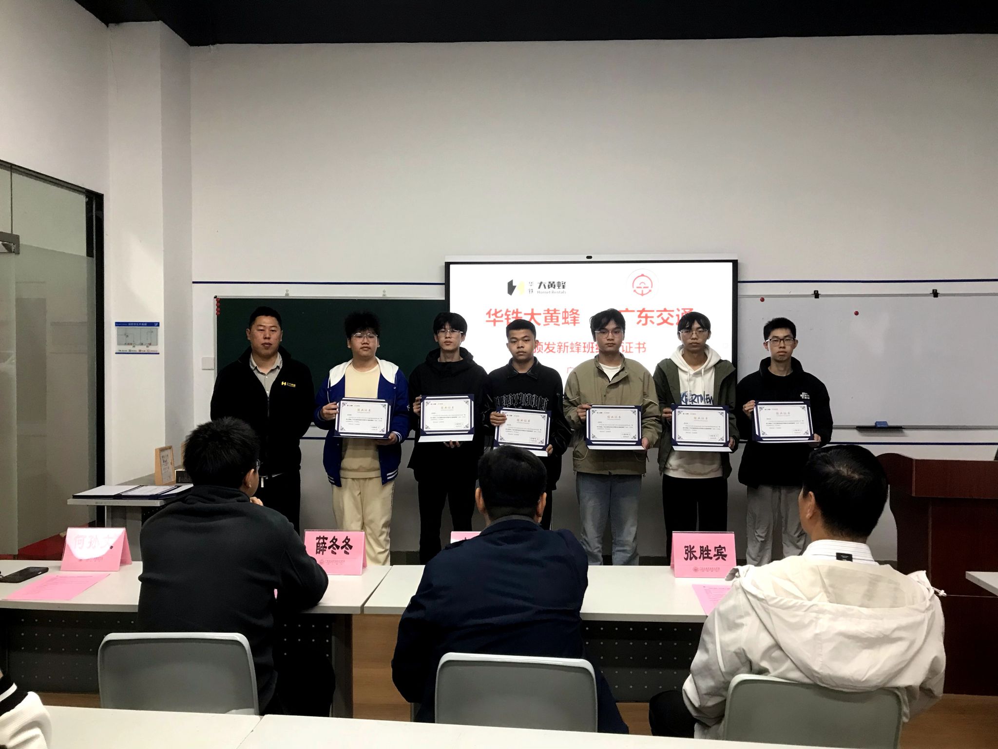 华铁大黄蜂订单班主要面向智能工程机械运用技术、轨道交通工程机械制造与维护两个专业的学生。经过面试初选、专业课程理论学习和企业培训师带训等,通过为期15天的专业培训和实操考核,共有12名同学通过的最终的考核。其中,1名学员获得“优秀班干部”称号,1名学员获得“技术标兵”称号,1名学员获得“优秀学员”称号。