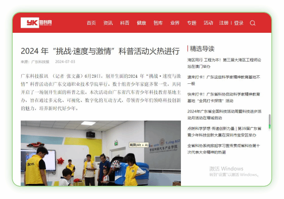 汽车青少年科技教育基地以学生为主体,成立了科普运营管理小组,以学院学生竞赛团队为技术支持,面向全院招募成立汽车科普志愿者队伍,形成了“1+1+N”的科普基地运营模式。基地形成了品牌科普活动:“经典·记忆——工程机械”主题科普活动”、“汽车技术与职业体验”主题科普活动、“挑战·速度与激情”赛车主题科普活动、“汽车创意设计”主题科普活动,活动还受到“广东科技报”的报道。