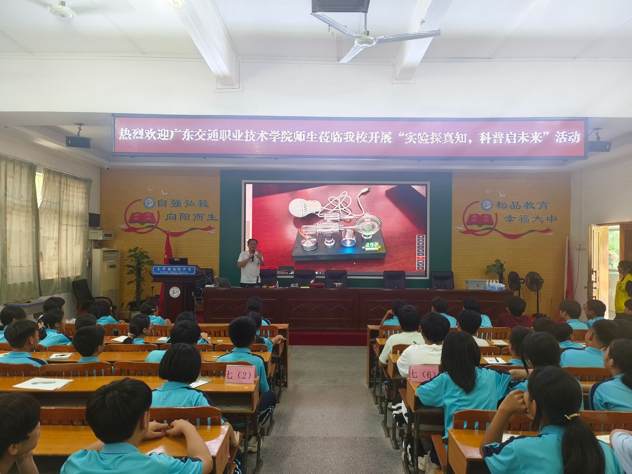 7月3日,学院汽车青少年科技教育基地陈翔老师带领团队赴清远市清新区太平镇初级中学开展“实践探真知,科普启未来”教育活动,与学校师生进行科普活动交流,共有200多名学生参与本次活动。