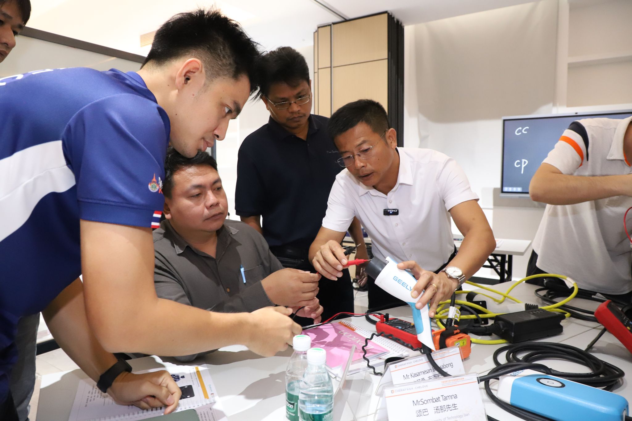 7月10-24日,由车拉夫国际教育集团与我院共同举办的“2024年国际校企合作院校新能源汽车技术及师资能力提升培训”在广州车拉夫汽车科技有限公司举行,来自Rajamangala University of Technólogy Isan(泰国东北皇家理工大学)的8位老师和车拉夫国际教育集团泰国分公司的3位老师参加了此次培训。汽车与工程机械学院专业骨干教师李化、李喜龙、郑浩然参加了此次培训,同时,黄景鹏老师为参加培训的泰国教师团队开展相关课程内容的进行授课。