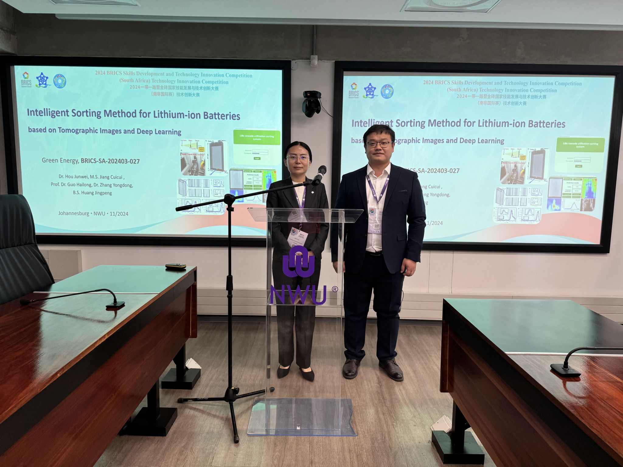 近日,“一带一路”暨金砖国家技能发展与技术创新大赛(南非国际赛)决赛在南非约翰内斯堡市圆满落幕。由我院汽车专业首批国家级职业教育教师教学创新团队成员侯俊伟、黄景鹏、蒋翠翠、张永栋、郭海龙组成的团队在“技术创新大赛”赛项中表现优异,凭借参赛项目《基于层析图像和深度学习的锂动力电池智能分选方法 Intelligent Sorting Method for Lithium-ion Batteries based on Tomographic Images and Deep Learning》的实用性、创新性、前瞻性,赢得国际专家评委的一致认可,排名第二,斩获银奖。
