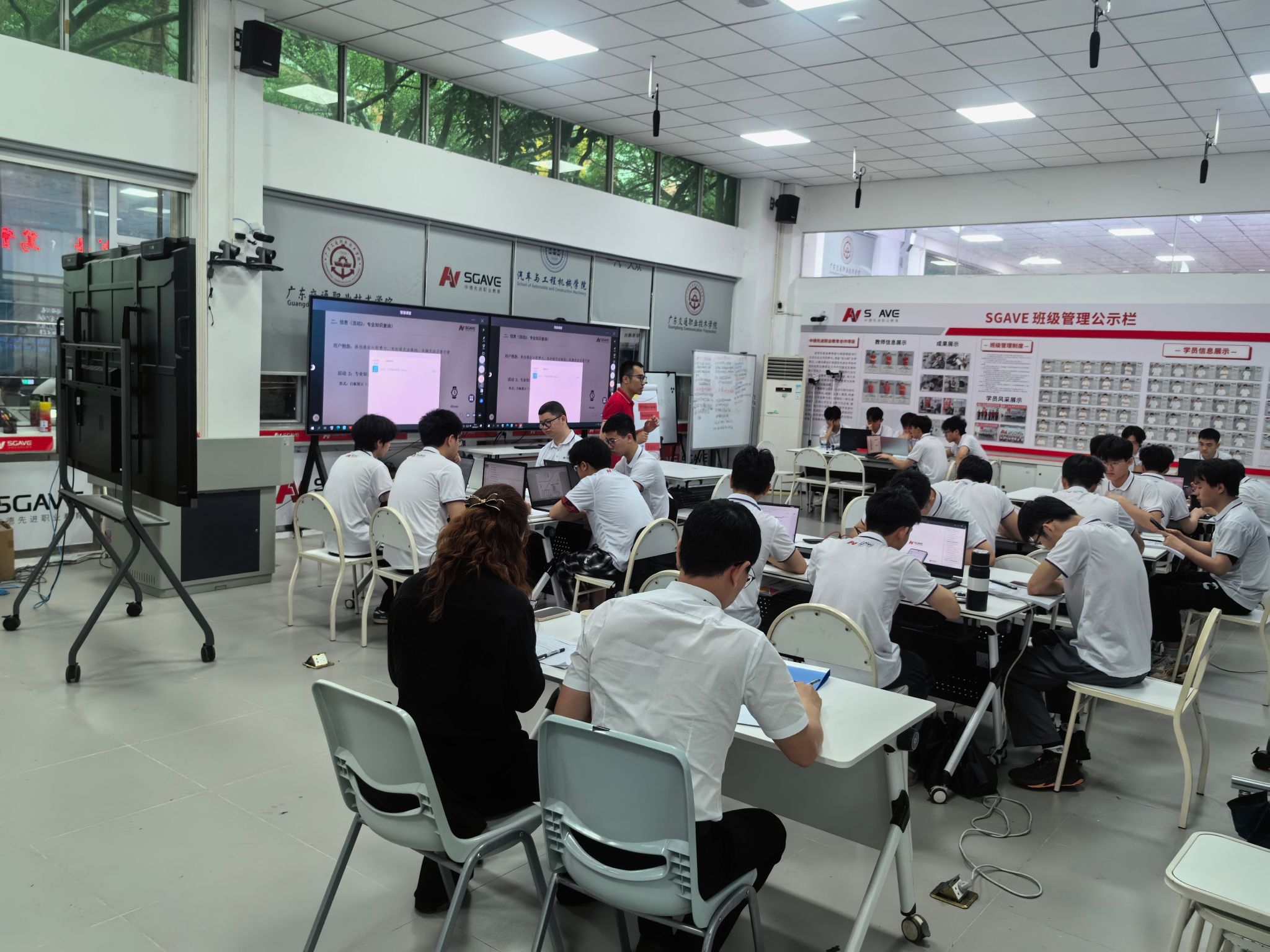 此次现场审核全面评估SGAVE项目在课程体系、教学模式、师资建设、校企合作、学生就业等十大领域方面的实施成效。在审核过程中,专家组听取了项目负责人张胜宾关于SGAVE项目实施情况的专题汇报,查阅了SGAVE项目文件资料,开展了管理层及师生访谈,深入汽车与工程机械学院产教融合实训基地、SGAVE项目教学实训场所,实地听取了SGAVE项目班李喜龙、吴洪滨两位项目教师的现场教学。